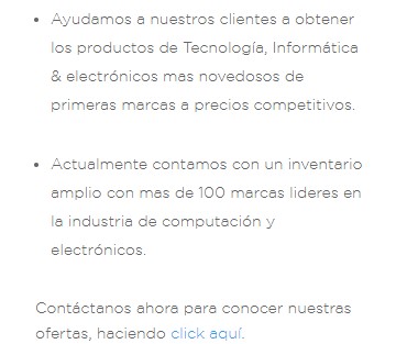 - Ayudamos a nuestros clientes a obtener los productos de Tecnología, Informática & electrónicos mas novedosos de primeras marcas a precios competitivos.